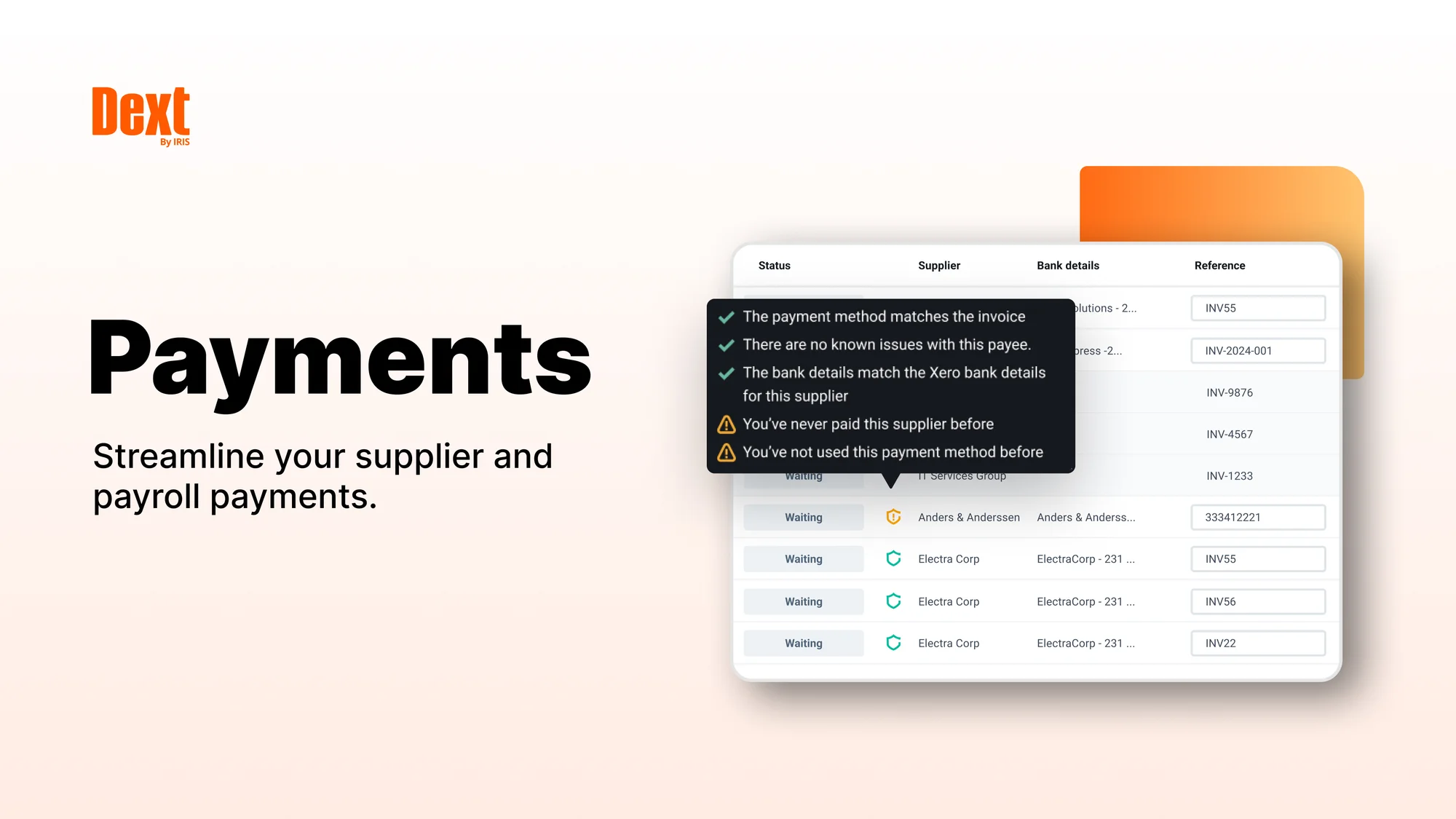 Dext supports safer payment processes and checks, helping reduce the risk of mistakes or fraud when supplier details change.